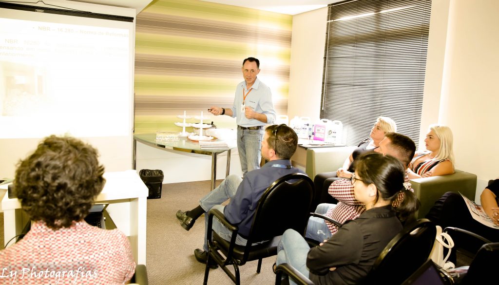 O evento começou com a palestra do engenheiro Leonardo Pupo destacando as principais Normas Regulamentadoras (NRs) da Associação Brasileira de Normas Técnicas (ABNT) que competem aos condomínios.