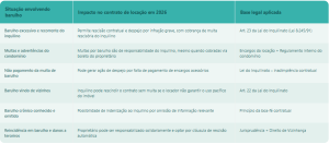 Quando o barulho excessivo é recorrente e gera notificações e multas, configura infração contratual grave. Nesses casos, o proprietário pode propor ação de despejo e pedir a rescisão do contrato sem pagar multa rescisória, cabendo ao locatário arcar com a multa contratual de saída antecipada e eventuais indenizações. Já as multas aplicadas pelo condomínio por ruído são, em regra, de responsabilidade do locatário, que deve ressarcir o proprietário sempre que o valor vier lançado no boleto condominial.