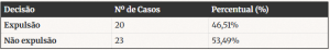 O resultado da pesquisa revelou dado relevante: foram localizados apenas 43 acórdãos tratando diretamente do tema em todo o período analisado. Não foram encontrados julgados sobre a matéria, a partir das palavras-chave utilizadas, nos demais tribunais e anos não indicados na listagem apresentada adiante, o que evidencia o caráter excepcional da judicialização da expulsão do condômino antissocial no Brasil.